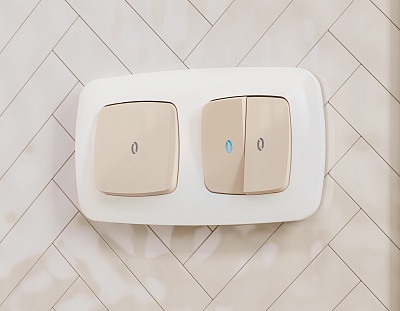 MO302040 Комплект механизма 1-кл прох.выкл с подсв10000K OMEGA Бежев глянец QUANT(OP3020,VM105,G29B)