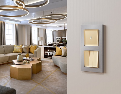 MA304010 Комплект механизма 2-кл выкл с подсветкой 3200K ALFA Бежев глянец QUANT (AP3040,VM115,G11Y)