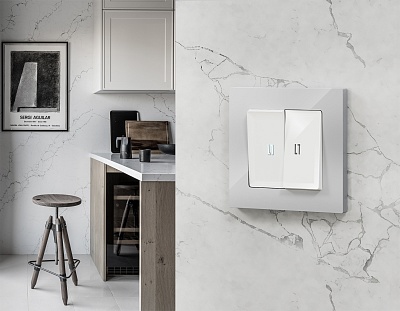 MA102030 Комплект механизма 1-кл прох.выкл с подсв 3200K ALFA Белый глянец QUANT (AP1020,VM105,G22Y)