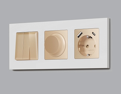 MA602035 Комплект механизма 1-кл прох.выкл с подсветкой 5600K ALFA Шампань QUANT (AP6020,VM105,G25W)