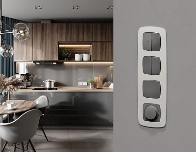 MA653030 Комплект механизма 2-клавишного перекрестного выключателя 10A-250V ALFA Антрацит серый QUAN