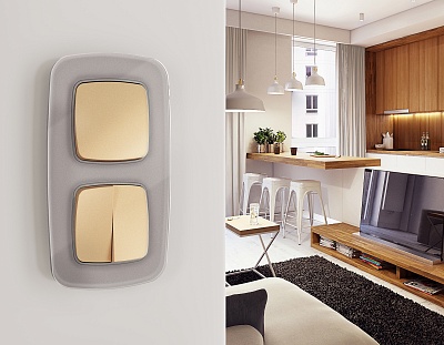 MA603030 Комплект механизм 2-клавишного перекрестного выключателя 10A-250V ALFA Шампань QUANT (AP603