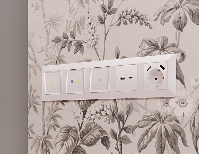 MA204040 Комплект механизма 2-кл прох.выкл с подсветкой 10000K ALFA Жемчуг QUANT (AP2040,VM120,G29B)