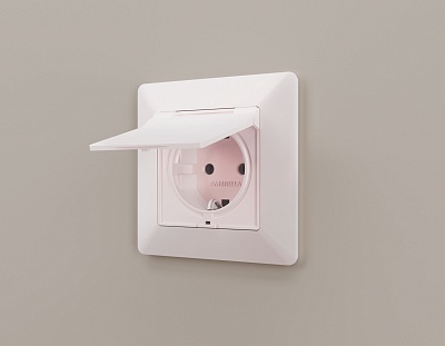 MA208010 Комплект механизма электр розетки ALFA Жемчуг с/з с шторк/крышкой IP44 QUANT (AP2080,VM141)