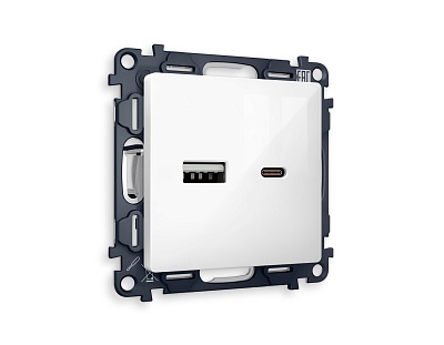 MA511010 Комплект механизма розетки ALFA Сталь матовый 2USB A+C 20W быстр.заряд QUANT (AP5110,VM177)