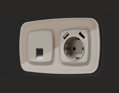OP3690 Лицевая панель OMEGA (Серо-бежевый матовый) для электр розетки с/з со штор 2USB тип A+A QUANT