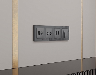 AP6425 Лицевая панель ALFA (Темная бронза матовый) для компьютерной/телефонной + TV розетки RJ-45/RJ