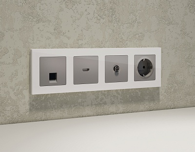 AP4105 Лицевая панель ALFA (Серебро глянец) для электрической розетки с/з со шторками 2USB C+C QUANT