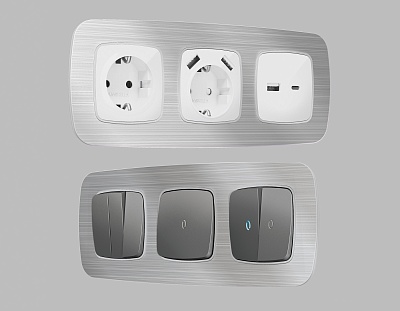 AP3705 Лицевая панель ALFA (Серо-бежевый матовый) для электрической розетки с/з со шторками 2USB C+C
