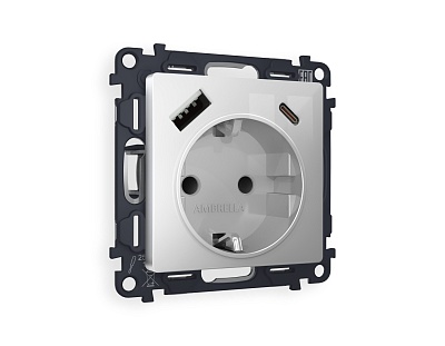 MA410010 Комплект механизма электр розетки ALFA Серебро глянец 2USB A+C 20W с/з QUANT(AP4100, VM160)