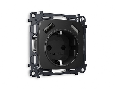 MO809010 Комплект механизма электр розетки OMEGA Черный матовый 2USB A+A 18W с/з QUANT(OP8090,VM155)