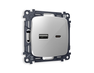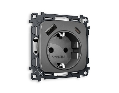 MO660010 Комплект механизма электр розетки OMEGA Антрацит серый 2USB A+C 20W с/з QUANT(OP6600,VM160)