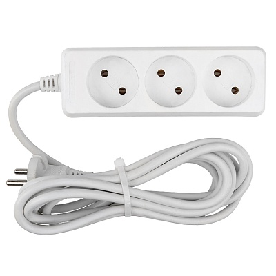 Удлинитель бытовой GES-10-2x075-3-3m 10А, 2х0,75 мм2, 3 места, 3 метра, без заземления, без выключат