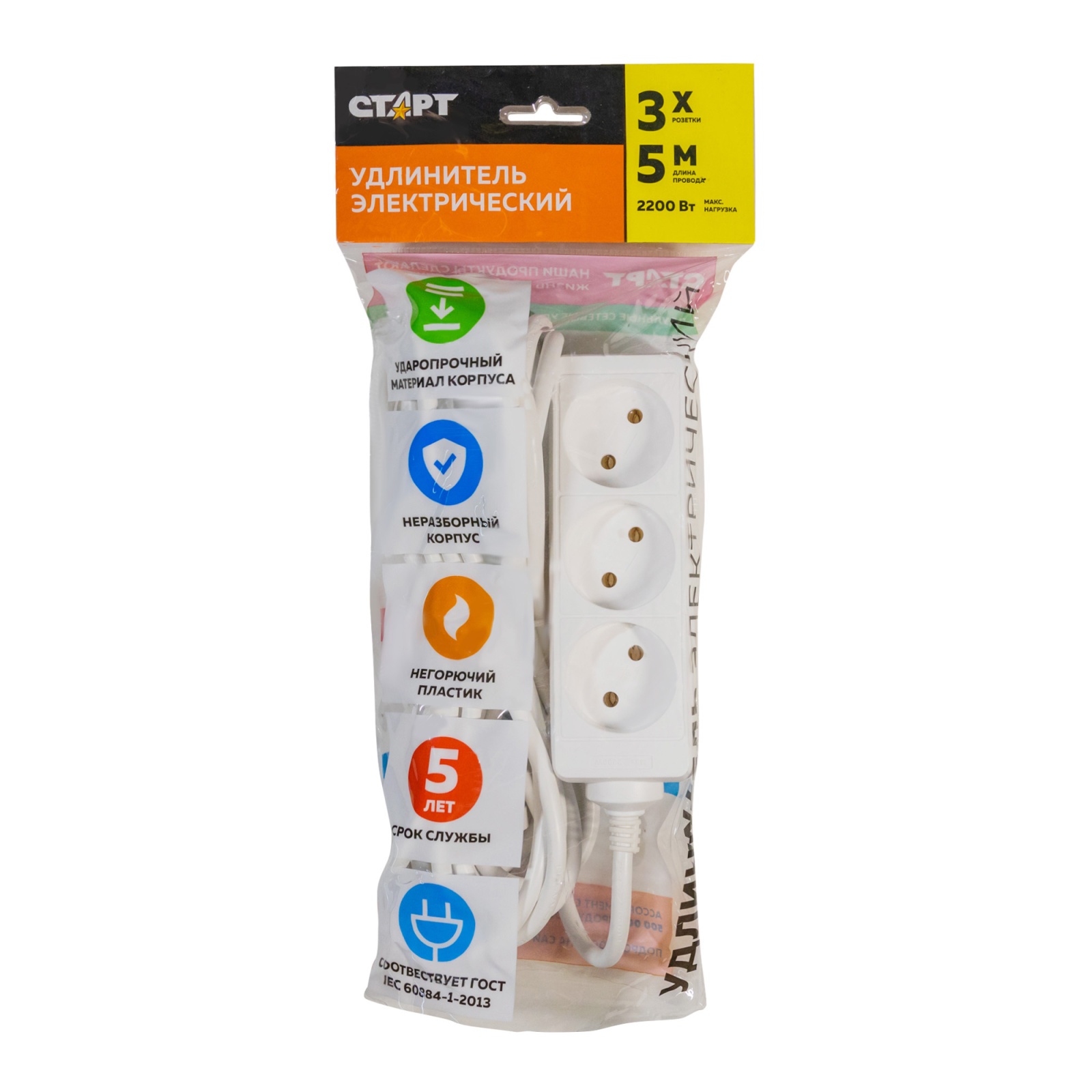 С/удлинитель СТАРТ S 3x5м без заземления 2х0.75 мм2