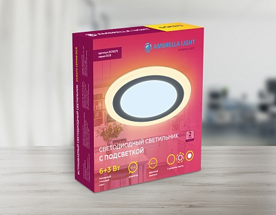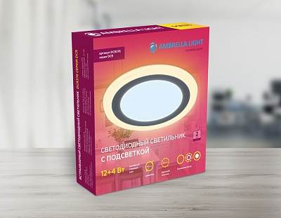 Светильник Ambrella DCR307 24W+6W 6400K/3000K 85-265V D230*35 (A110-200) с подсветкой и регул.крепеж
