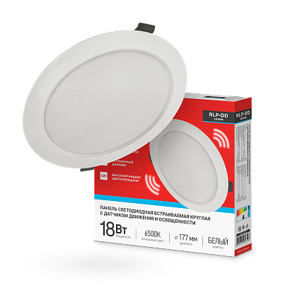Панель светодиодная встраиваемая круглая RLP-DD 18Вт 230В 6500К 1440Лм 177мм, датчик движения, белая