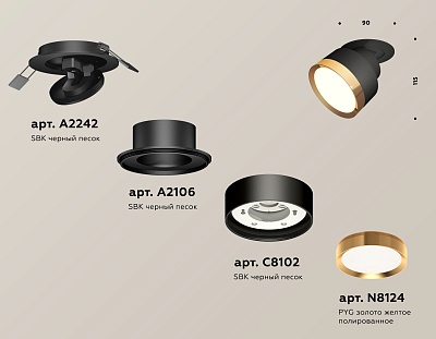 XP1105001 PYG/SBK золото желтое полированное/черный песок MR16 GU5.3 LED 3W 4200K(A2302,C1105,N7014)