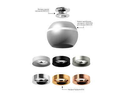 Корпус светильника накладной D60/70mm C1104 PSL серебро полированное D100*H80mm MR16 GU5.3 LED 3W 42