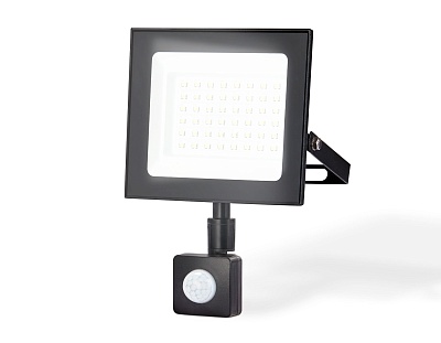 Прожектор светодиодный UNIEL ULF-F62-50W/6500K SENSOR IP54 200-240В BLACK с датчиком движения и осве