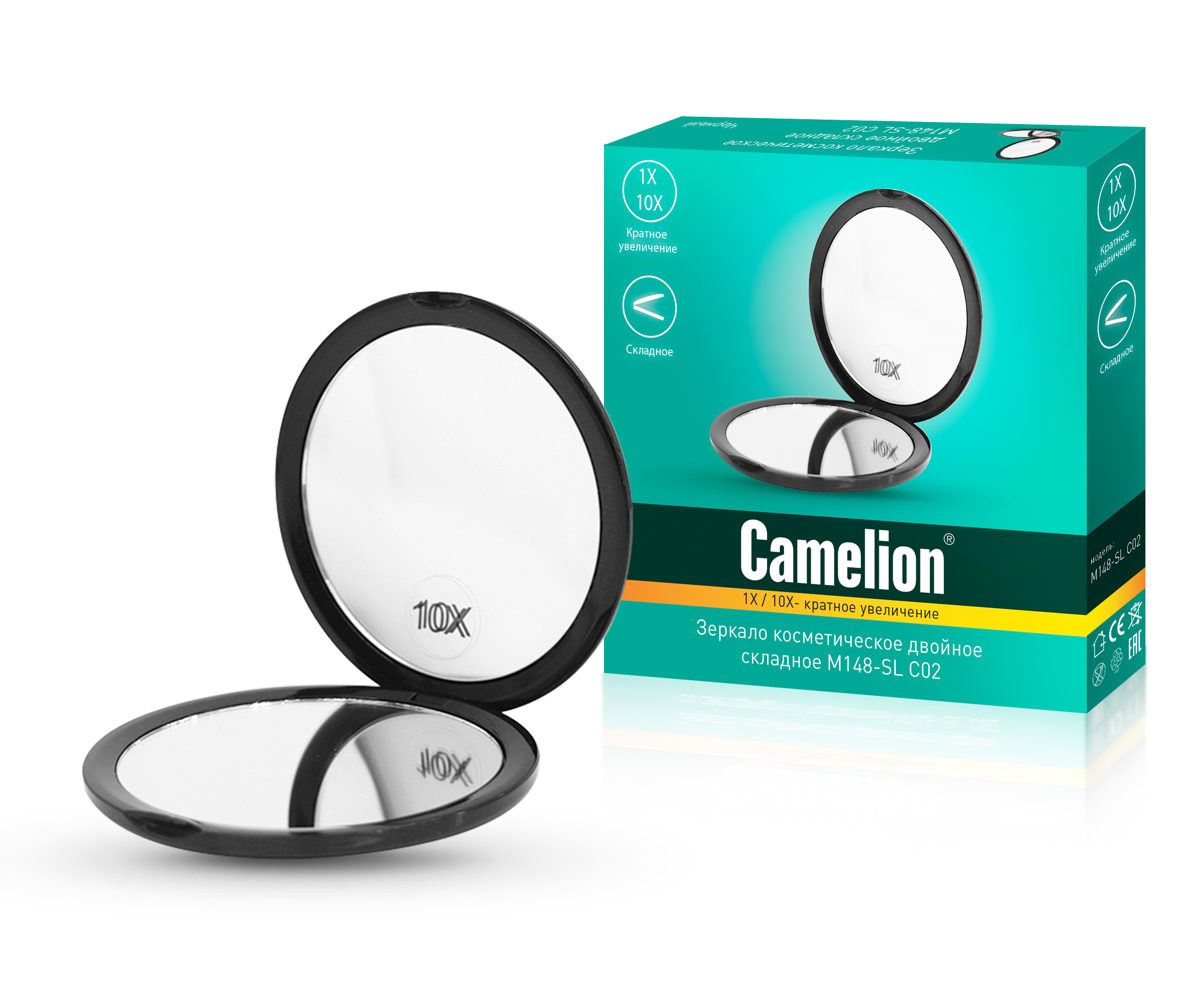 Зеркало CAMELION M148-SL черный, двойное складное, 1х/10х